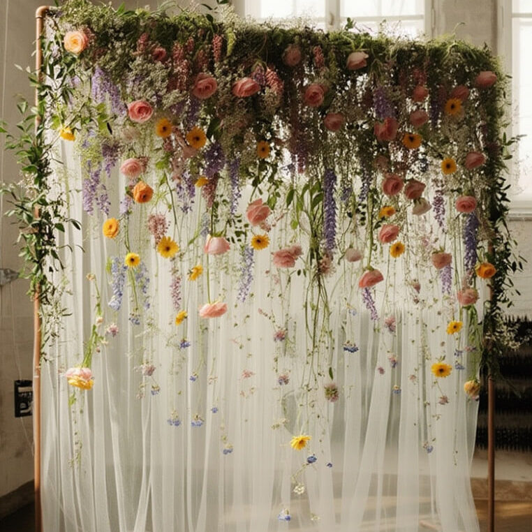 ✔ Нежное оформление с подвесными цветочными композициями