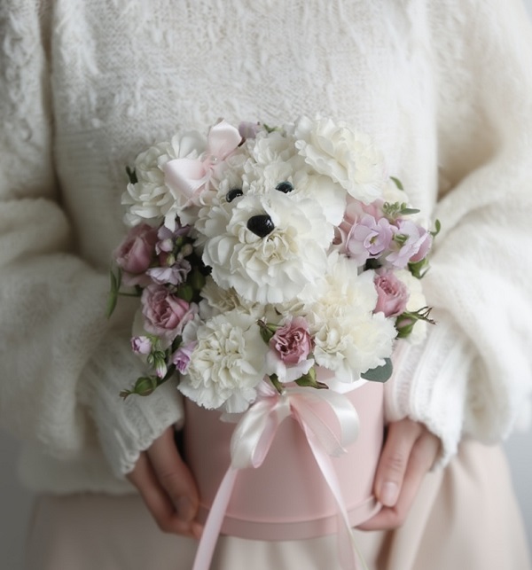 Нежная цветочная композиция в шляпной коробке с декоративным цветочным мишкой станет оригинальным подарком на 8 Марта, Пасху, день рождения, свадьбу и другие праздничные события. Белые и розовые цветы создают атмосферу уюта, нежности и романтики, идеально подходя для поздравлений, романтических сюрпризов и украшения интерьера.