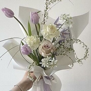Весенняя композиция из первоцветов — тюльпаны, роза, алиум .