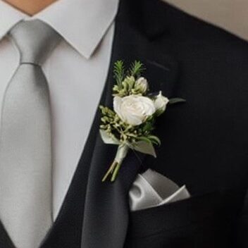 Бутоньерки выполнены из живых цветов, в комплекте — булавка для крепления.
