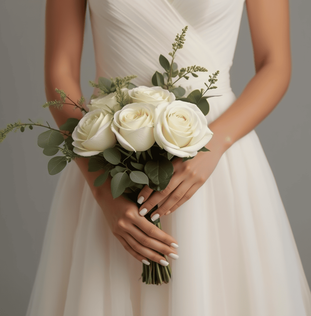 Букет невесты из роз и веточек эвкалипта .